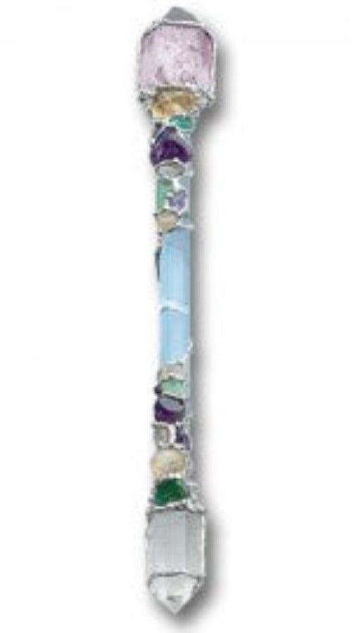 Directo del diseñador. Cada pieza está hecha a mano y es muy única. Todas las varitas grandes miden aprox. 11-13 pulgadas de largo. Todas las varitas grandes vienen con una bolsa de terciopelo y una tarjeta informativa.