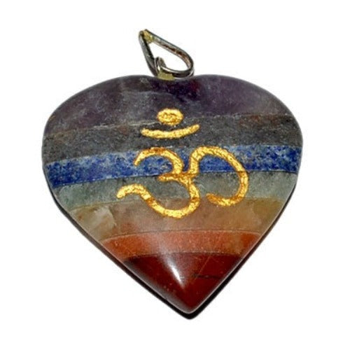 Om Carved Heart 7 Chakra Bonded Pendant for Meditation, Healing and Balancing.