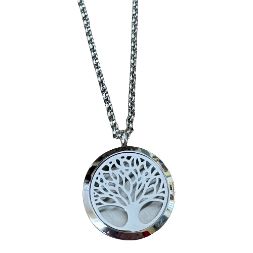 This essential oil pendant is a beautiful, organic way to use your essential oils. This is a staff favorite, featuring a laser cut tree of life cutout on the stainless-steel diffuser pendant. The chain is a long 18" stainless steel chain with a lobster clasp, ensuring a rust, lead, nickel, and tarnish free piece. This is truly a gorgeous piece of jewelry.
