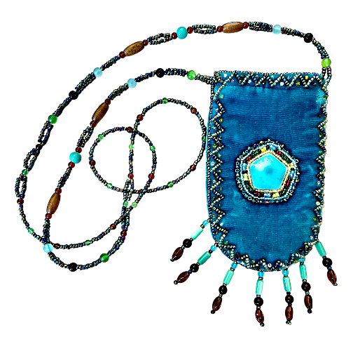 One-of-a-kind hand beaded medicine bag available in 3 styles. Only three bafs available.