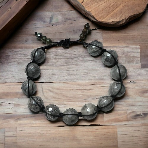 Crafted with naturally unique Picasso Jasper, this adjustable bracelet adds a touch of earthy elegance to any outfit. Expertly designed for versatile wear, this bracelet adapts to your style with ease. Embrace the healing properties of this stone while making a statement.